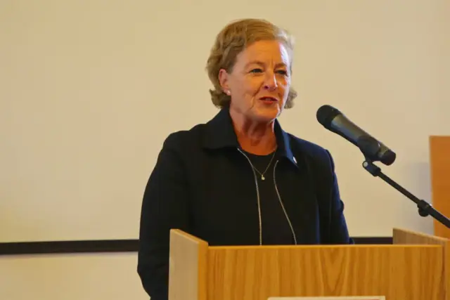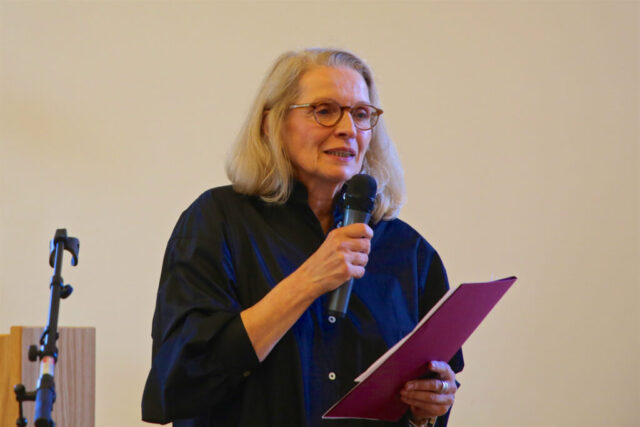 Laudatorin Michaela Engelmeier mit den Preisträger*innen Herbert Briske, Heinrich Buchholz, Ivana Moreschi, Karin Meinecke und unserer Orga-Team-Sprecherin Regina Fiore